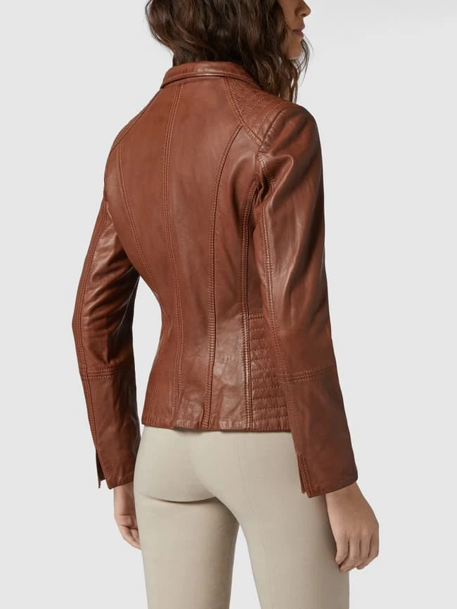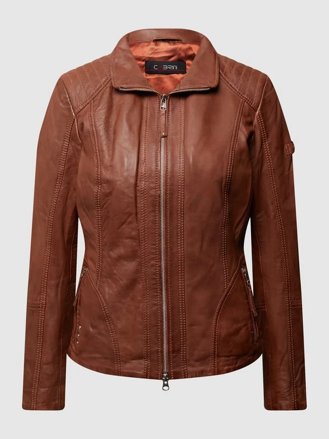 Cabrini Lederjacke Mit Variablem Stehkragen – Cognac