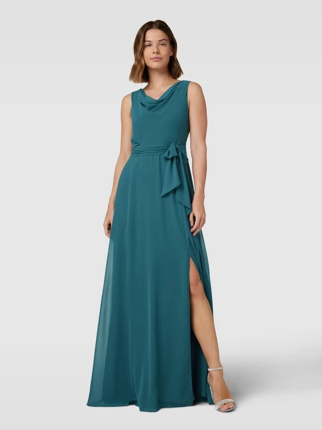 Christian Berg Cocktail Abendkleid Mit Wasserfallausschnitt – Smaragdgrün Meliert