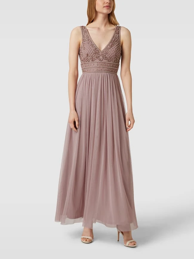 LACE & BEADS Abendkleid Mit Perlen- Und Ziersteinbesatz – Rosé