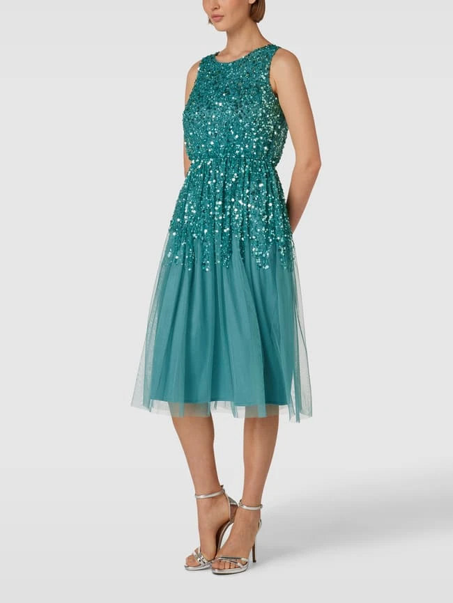LACE & BEADS Cocktailkleid Mit Paillettenbesatz – Petrol