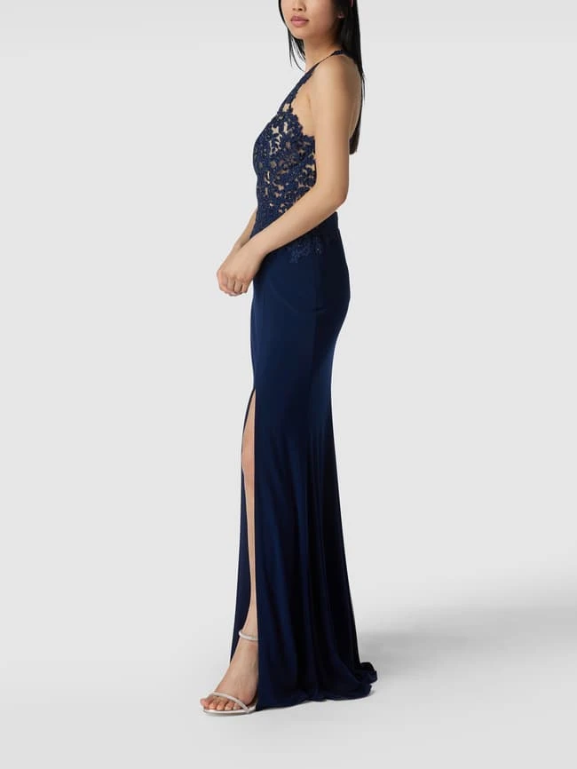Mascara Abendkleid Mit Floralen Stickereien Und Ziersteinen – Dunkelblau