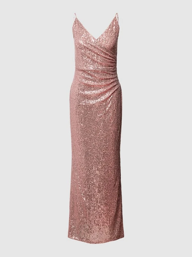 Paradi Abendkleid Mit Wasserfall-Ausschnitt – Rosé