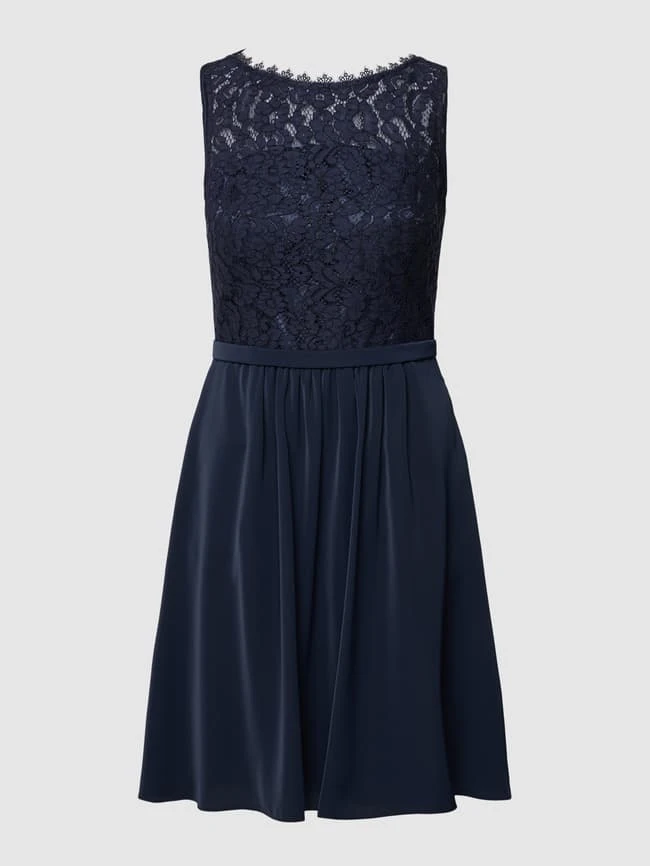 V.M. Cocktailkleid Mit Spitzenbesatz – Dunkelblau