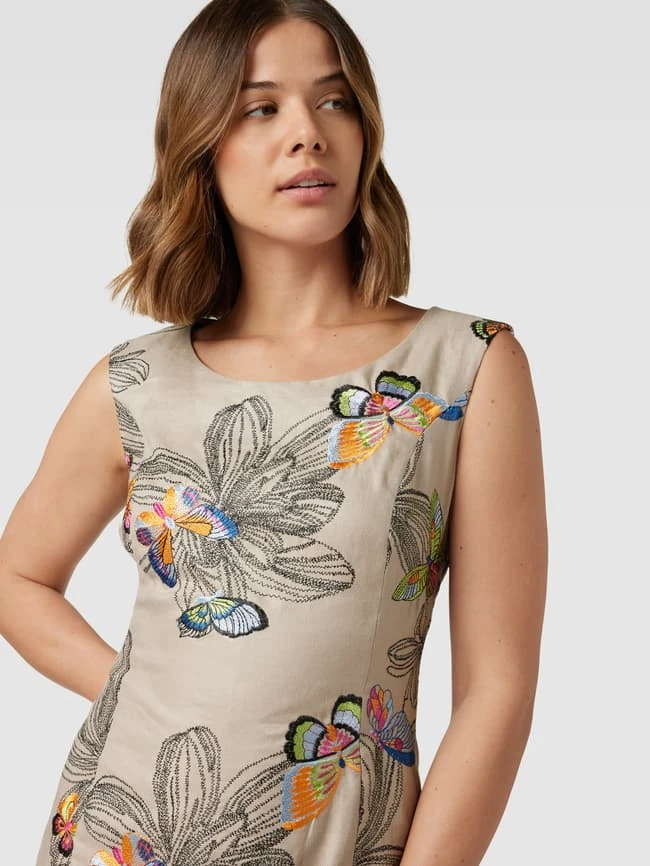 White Label Knielanges Kleid Aus Leinen Mit Motiv-Print – Sand